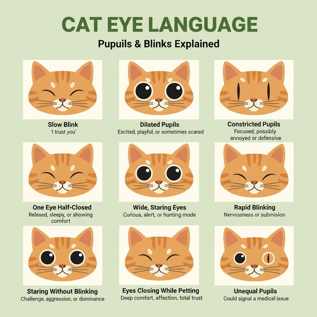 Interpreting cat eye language requires considering the broader context, including body posture, ear position, tail movements, and vocalizations. For example, dilated pupils paired with crouching and tail flicking likely mean fear or anxiety, while the same pupils combined with play bows and purring suggest excitement. Observe your cat holistically to understand the full range of its communication.